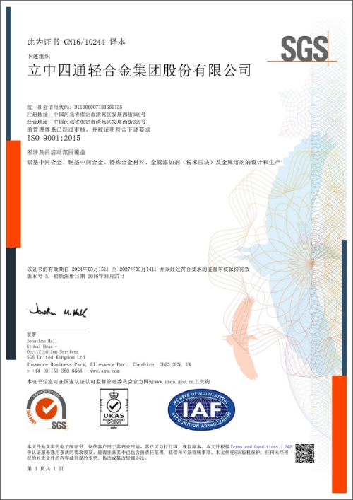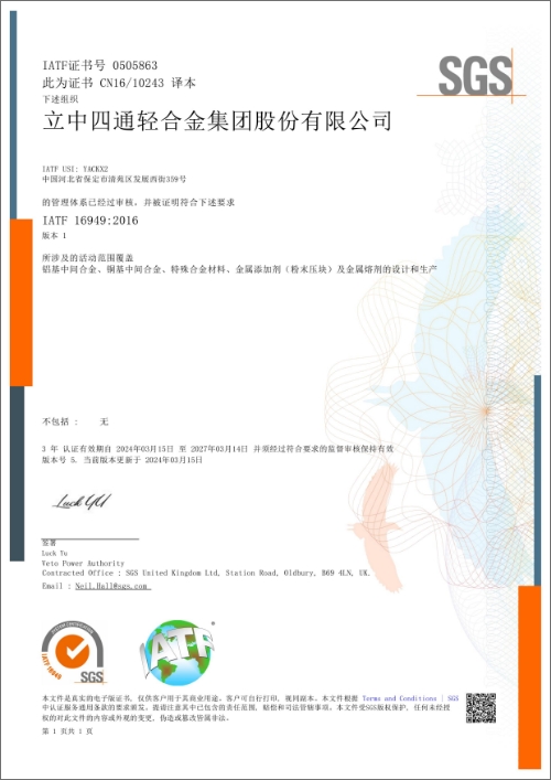 太阳集团集团各公司通过了质量管理体系、环境管理体系、职业健康安全体系、能源管理体系、信息安全、ASI铝业管理的国际最高标准等认证