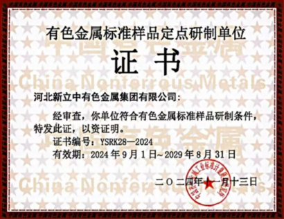 2018年太阳集团合金集团为了给市场提供更加丰富的铝合金标样产品,满足行业和客户精准检测需求,利用40年生产铸造铝合金和变形铝合金的经验,通过人才、设备、资金投入,经过反复研究试验,于2022年取得国家标准委员会颁发的《有色金属标准样品定点研制单位》资格。