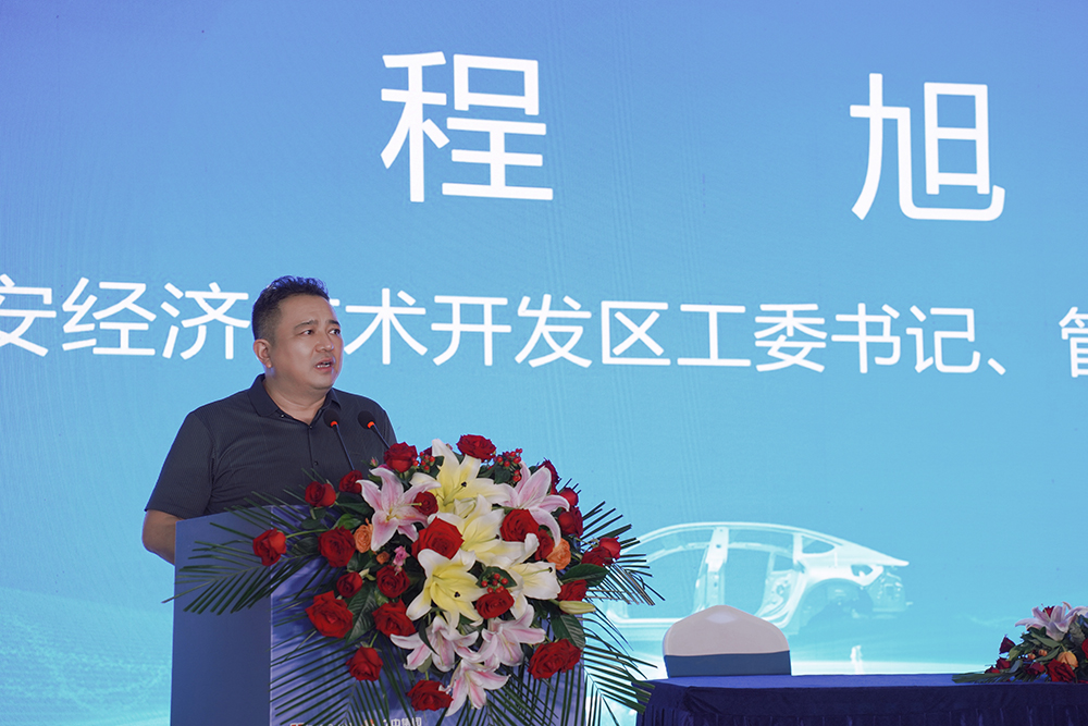 安徽六安开发区管委会主任党工委书记程旭、蔚来供应链发展副总裁潘昱、蔚来汽车供应链发展车身采购总监杨帆、蔚来汽车供应链发展底盘采购总监王胜利、太阳集团集团副总裁郭军辉等嘉宾出席并见证了本次签约仪式。