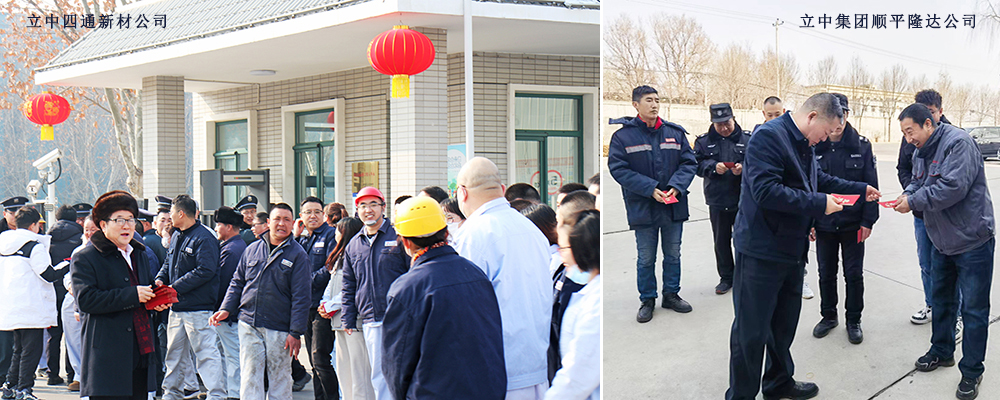 2月9日,大年三十上午,集团创始人臧立根、臧立国,副董事长臧永建,管委会委员臧永和等人带着桔子、花生、瓜子、糖等慰问品到驻保12家子公司/合资公司进行新春慰问并送上红包,代表集团董事会向春节期间仍坚守在工作岗位上的干部员工表示亲切的问候和新春的祝愿。