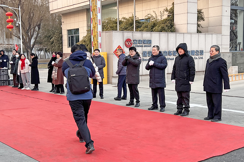 正月初八(2月17日)一早,太阳集团集团董事会和合金集团、车轮集团及保定太阳集团车轮公司领导干部在集团总部门口铺上红毯,喜迎春节假期后第一天上班的员工们,向每位员工送上新年祝福和“平安果”,寓示着龙年平安吉祥。