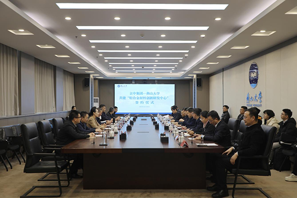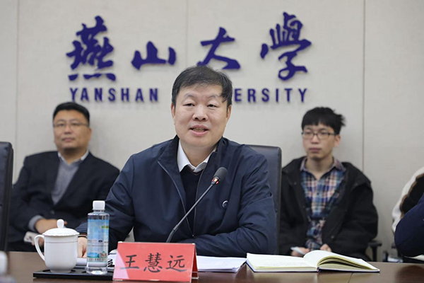 臧立国对燕山大学的科研实力与人才培养成果表示高度赞赏。他介绍了集团现有三大产品板块的产业布局相关情况,并回顾了2021年带队到访燕山大学结下的深厚合作渊源,表示燕山大学在亚稳材料与高端装备等领域的深厚积累,为双方合作奠定了坚实基础。他希望以此次共建研发中心为契机,进一步拓展在新材料开发、科技成果转化与人才培养等方面的合作空间,实现资源共享、优势互补,共同推动轻合金材料在相关领域的创新应用。